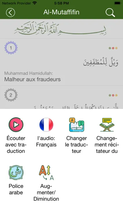 • Al Quran: The Holy Quran with audio recitations, phonetics, tafsir and translations in French languages.
