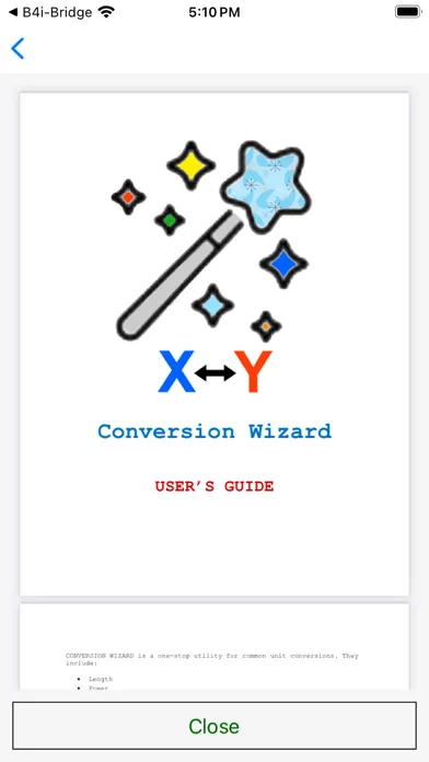 Conversion Wizard is easy to use. it includes a User Guide in pdf format, suitable for viewing within-app or sharing to an external printer.