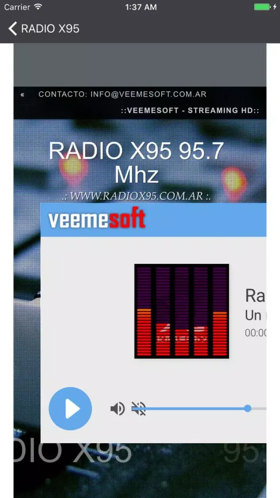 Con esta aplicación podrá escuchar Radio X95 95.7 Mhz. Además podrá navegar la página web de la radio así como también su facebook.