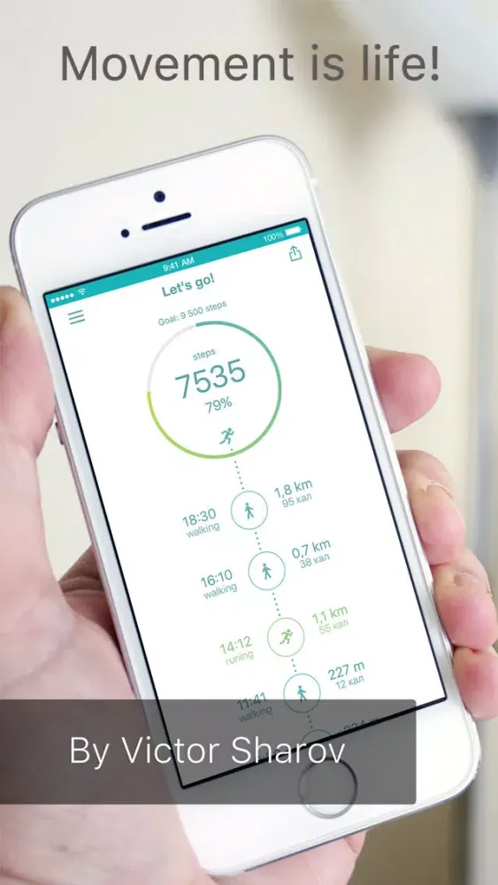 Let's go! is a pedometer. The calculation of the walked distance: walking, running.