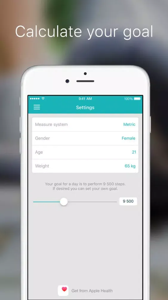 The required number of walked steps depends on the individual predisposition of each person, so the data of the calculator should be considered as a secondary direction. The application is integrated with Apple Health for receiving the information about your body.