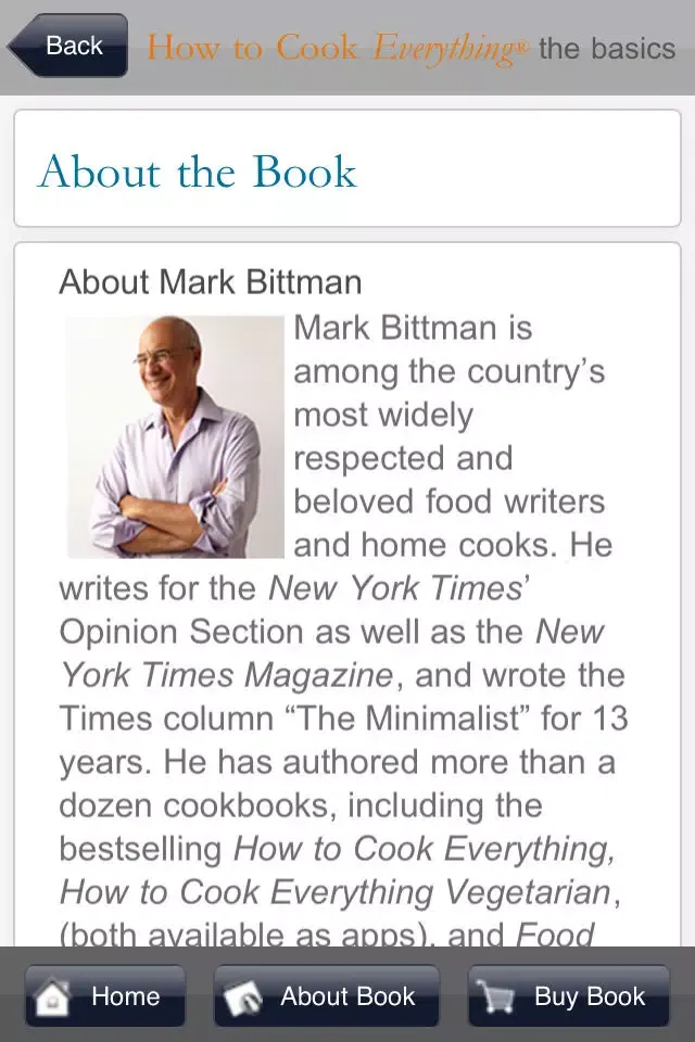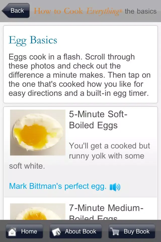 In the Get Cracking app, try your hand at timing and cooking the perfect boiled egg, using photos and instructions from the book. Then check out the gallery for an idea of all the cookbook has to offer. Each of the 1,000 photos in The Basics teaches a lesson, from identifying essential equipment and key ingredients to demonstrating all the techniques you need to cook a wide range of simply great food. Even if you’re not a true beginner, the recipes, tips, and variations work together to help you hone your skills. The app’s gallery also includes several snapshots of pages from the book, so you can see how easy it is to follow Mark Bittman’s recipes and kitchen guidance.