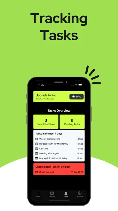 You can review unfinished tasks in the past and see the tasks in the next 7 days through your profile page. In this way, you can keep control of your work.