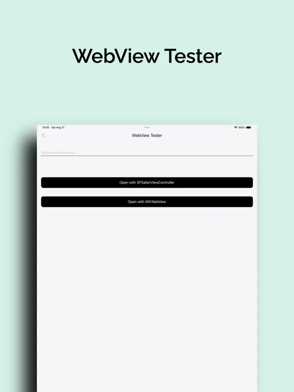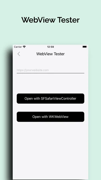 Easily test your webpages in a Safari(SFSafariViewController) or WebView(WKWebView). Save your time by not having to spin up your own iOS WebView environment to test the webpages.