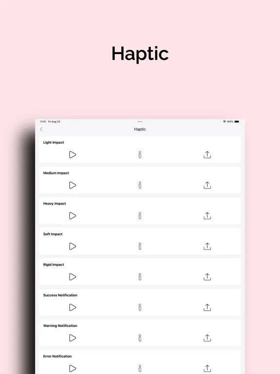 Tool for test, learn, and implement haptic feedback, and you could share the code with yourself through Messages, email, airdrop, and more with one click.