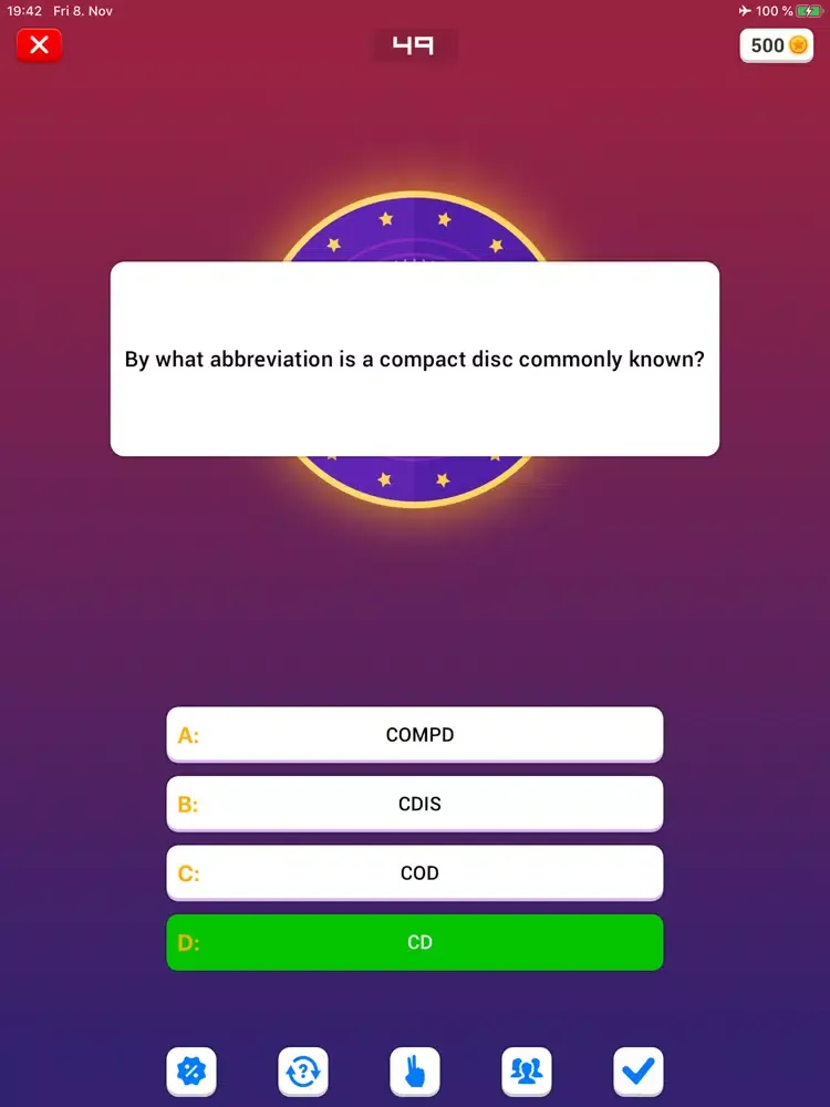 - 4 lifelines: “50:50”, “Change the question”, “Second chance”, “Ask the Audience”