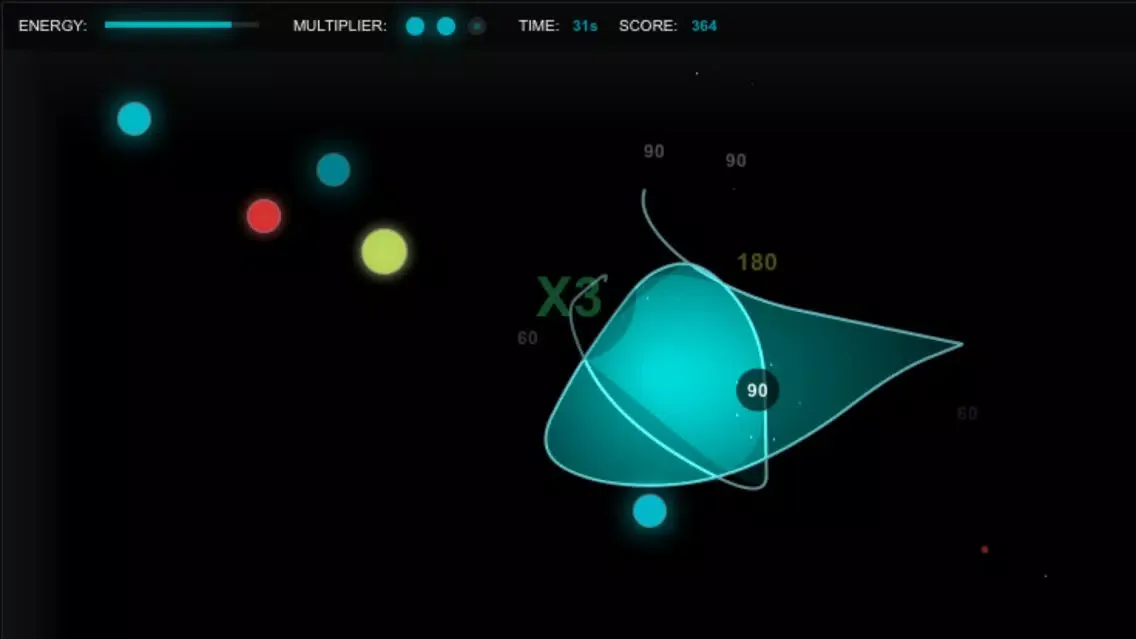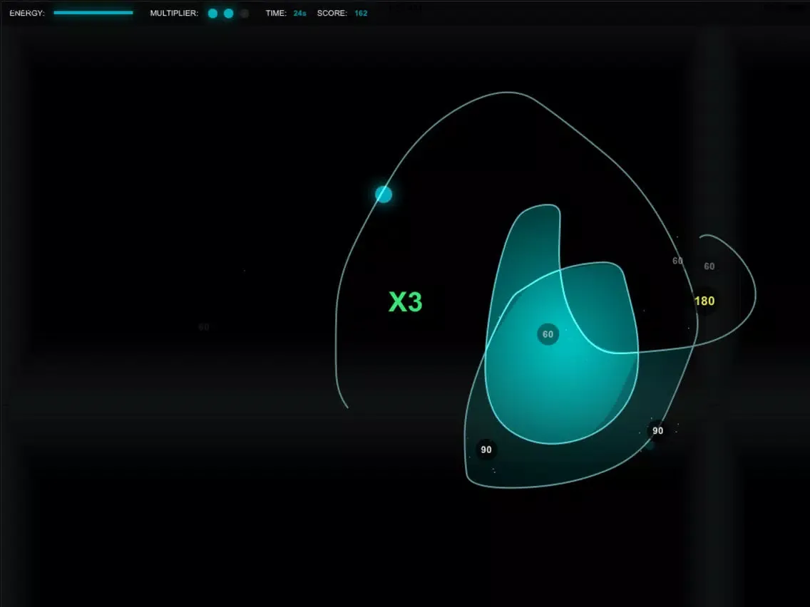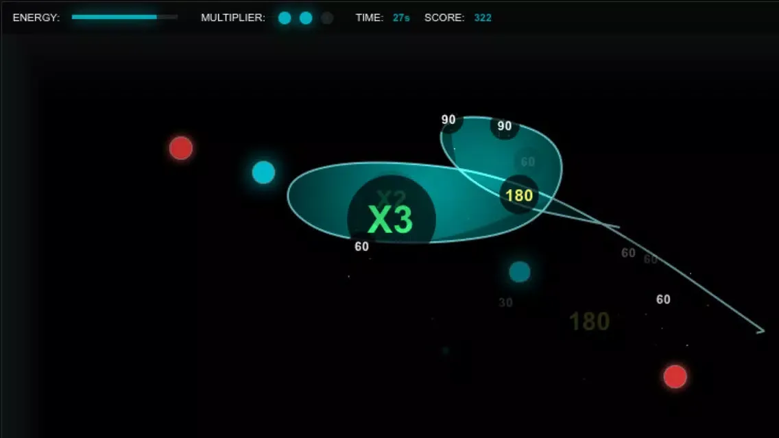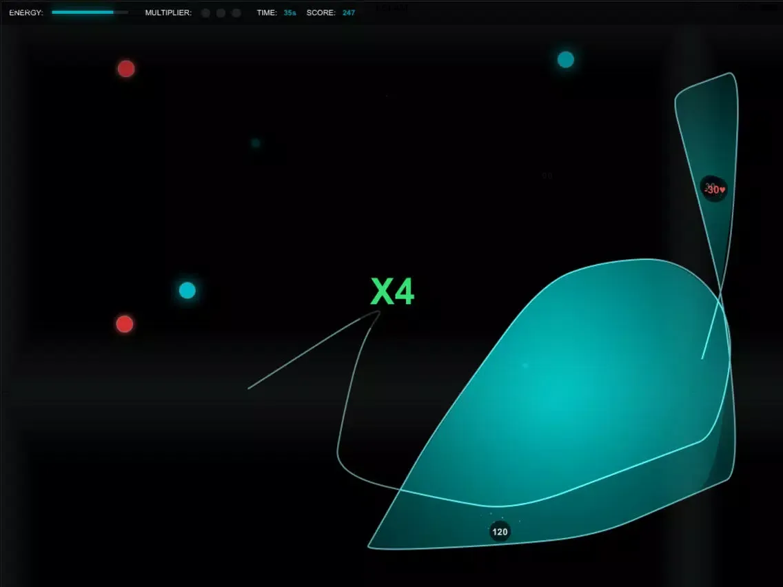 When you circle multiple blue or pulsating yellow orbs (without getting red ones) you multiplier increases!