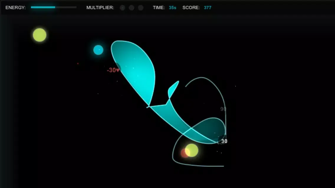 Move fast , run circles around the orbs to capture/pop them, gain bonus points by getting multiple orbs at once, without getting the red ones !