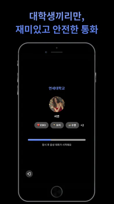 - 회원가입에 제한이 없는 타 통화 어플과 달리, 학교 인증을 통해 대학생끼리만 클린하게 소통할 수 있어요.