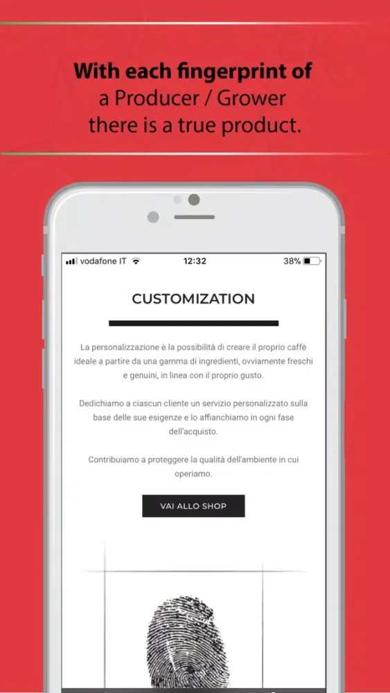 For each Fingerprint of a Producer / Farmer corresponds a true Product and a True Origin. The true information will be found inside the Impression scanned on the Packaging through a QR code where the Producer / Farmer informs and certifies his product.