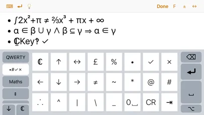 • Maths: a layout designed for general maths, with digits, pi & infinity, and a wide set of operations.