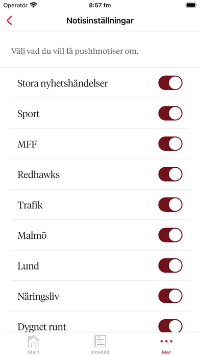 - Nyhetsnotiser vid stora händelser. Välj vilka ämnen du vill få notiser om.