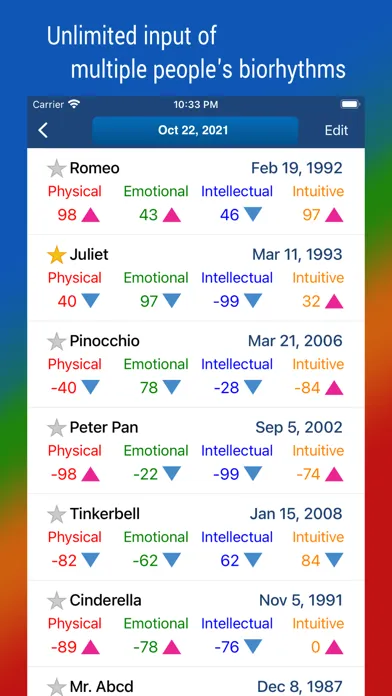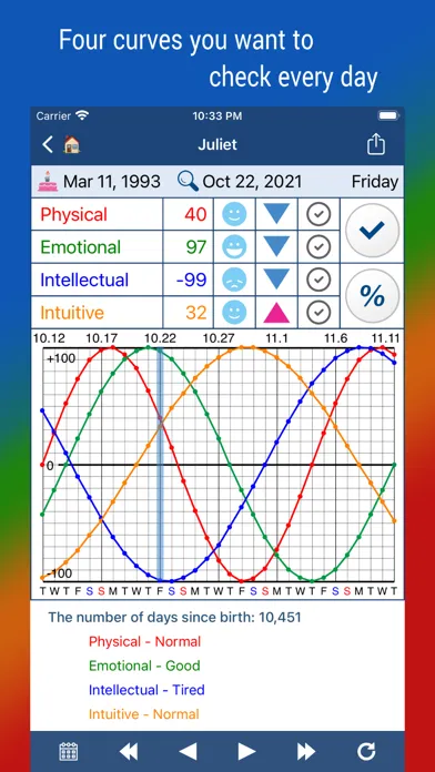 • Change dates easily to view biorhythms on multiple dates