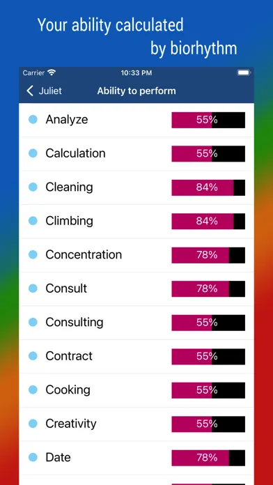 • Additional features different from other biorhythm apps