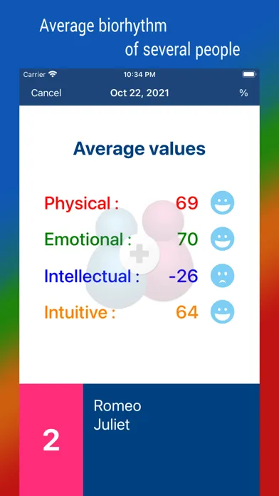 • Calculate the average of two or more users' biorhythms
