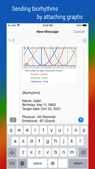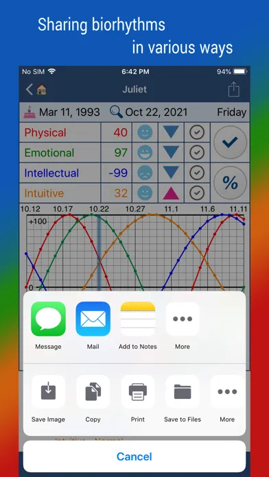 • Send biorhythm using messages or email