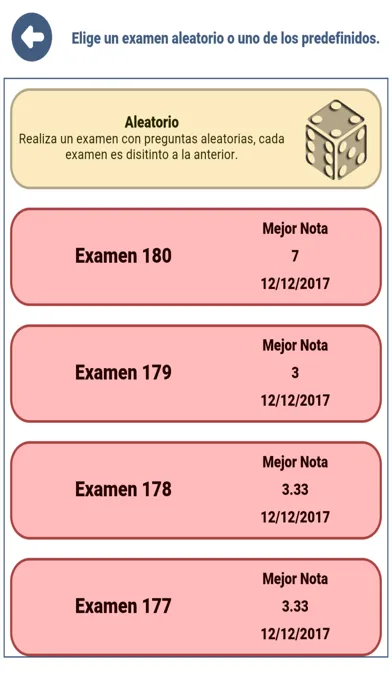 - Realizar exámenes predefinidos. Los exámenes predefinidos no repiten preguntas entre ellos, por lo que si realizas todos los exámenes te aseguras haber visto todas las preguntas.