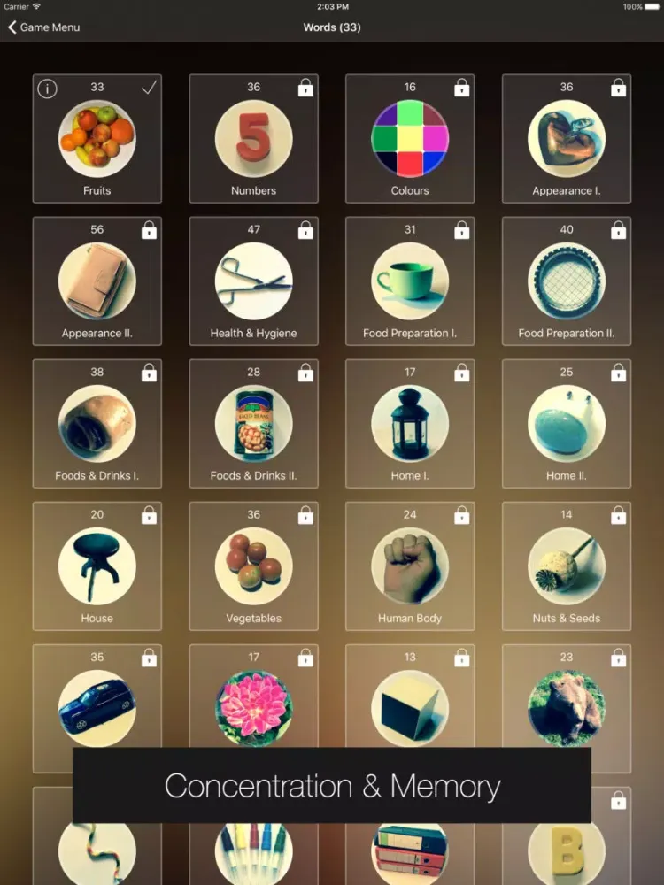 • 13 word packs with overall 800 words available thru In-App purchase