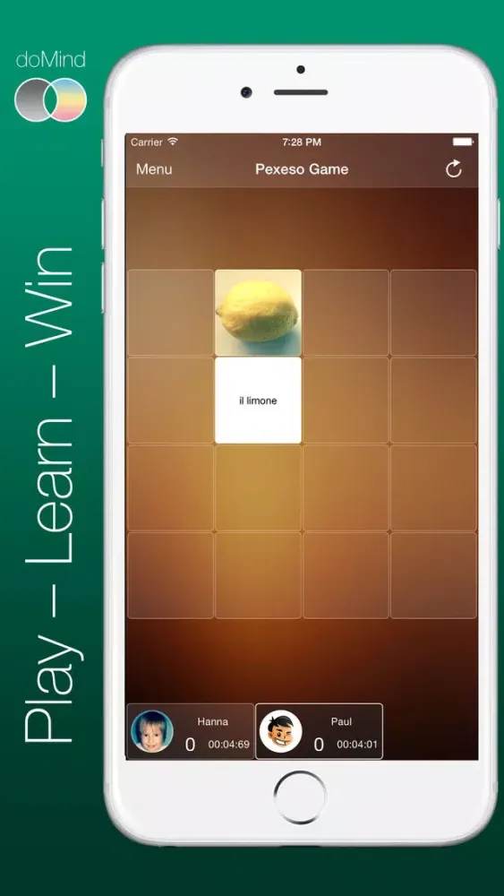 5. doMind is easy with your friends. Play with friends, parents, children or grandparents and learn few new words in foreign language.