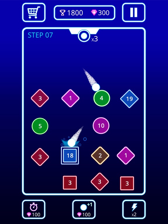 Drop the balls at the top of the screen, and make them bounce on as many blocks as you can. Every bounce on a block will decrase its lifes number and when it reach 0, it explodes.