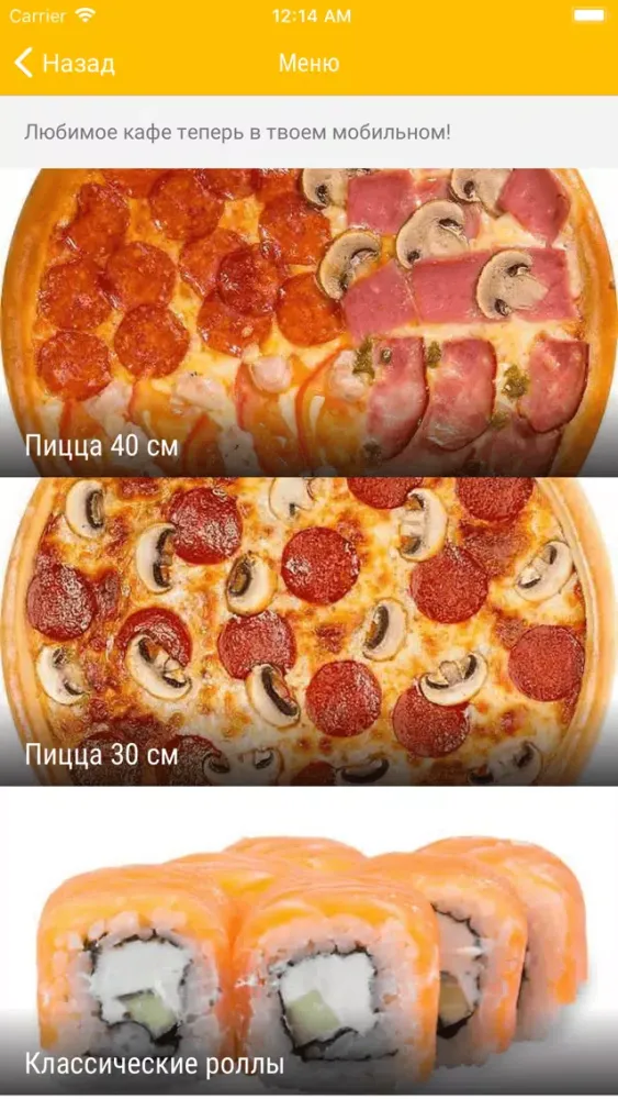 Мобильное приложение "Пицца Суши Орех" — это новый удобный способ заказать еду! Попробуйте наши пиццу или роллы, это стало как никогда просто! В приложении доступны: