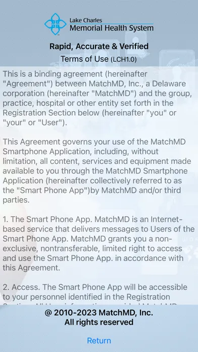 MatchMD LC is a HIPAA secure communication application for supporting MatchMD's web portal for Lake Charles Memorial Health