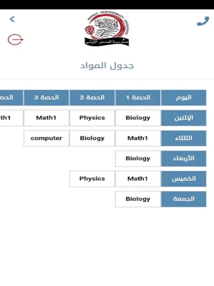 (البرنامج الاسبوعي): يستطيع الأهل والطالب من خلاله الاطلاع على برنامجه الاسبوعي