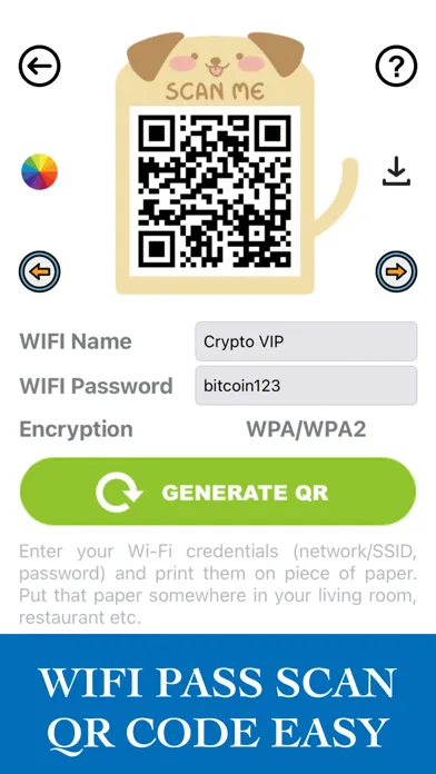 NOTE: This is NOT an application to hack wifi pass, get wifi password or show wifi pass! This is an application only to create QR code from your WIFI, for guests to connect conveniently without having to ask for wifi password: Join wifi without password - Only scan QR code!