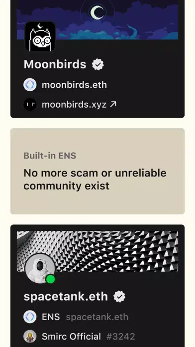 Supported ENS Domain by default helps verify every Profile and Community. A user on Buidler can always know where others come from, thanks to traceable NFTs. There will be no more scams or unreliable communities existing.