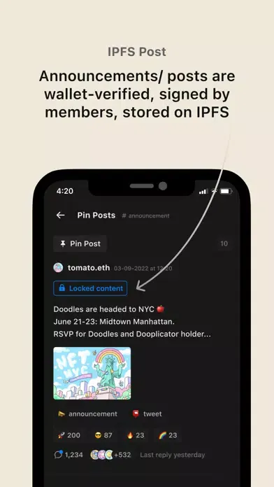 Official announcements/posts are wallet-verified, signed by team members, and stored on IPFS. This makes them easy to identify as distinct from rumors or inaccurate information, which we try to keep out of our community.
