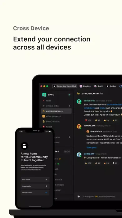 It helps friend-to-friend payments easy as texting. Native wallet in the app allows members to send and receive tokens quickly, participate in voting, and airdrop much more easily.