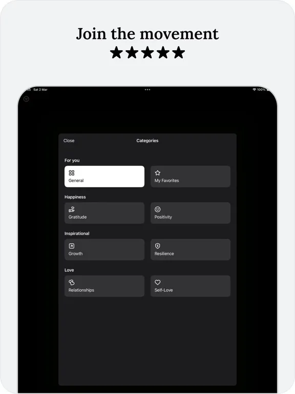 • Themes and Categories: Browse quotes by category — from success and personal growth to happiness and mindfulness.