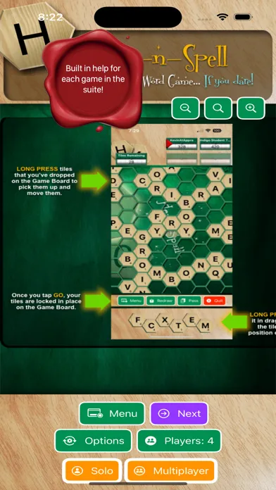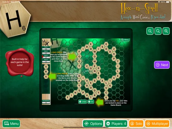Additionally, when you make a one-time in-app purchase any of the other games in the Hexo suite, and get extra bonus features (such as Options and Solo play) in the core Hex-n-Spell game, totally for Free!