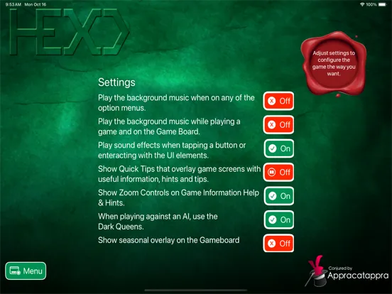 Using our unique option system, each of the four games inside of the Hexo suite are amazingly configurable! Adjust everything from the way redraws are handled to the smarts of the AI players, make it your Hexo, your way! Adjust the games for infinite replayability§!