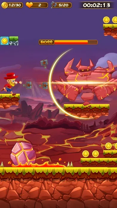 Run, jump and explore the arcades. Travel across dangerous forests, Volcanoes, deserts, Machine rooms, rock paths, swamps, etc. Collect coins, gold, acceleration props to help you defeat the Monster!