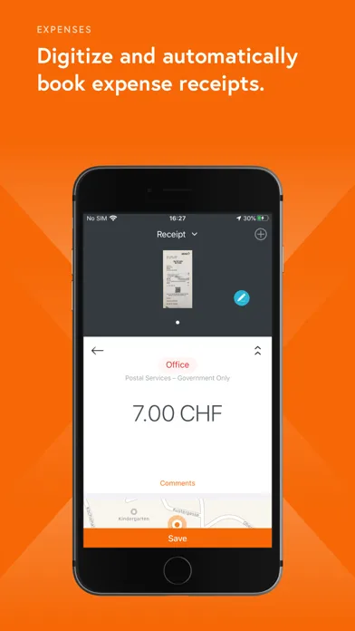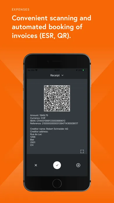 When processing an expense receipt, the app is able to use character and text recognition to automatically retrieve information such as the amount, VAT and point of sale and subsequently book it.