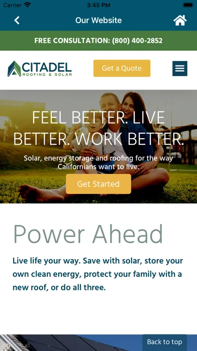 Citadel Roofing & Solar is a free app available for anyone to download and is used for those that want to communicate with Citadel Roofing & Solar. It is as simple as downloading the App and register as a user. Once registered, you can begin communicating right away. We will reach out to you via push notifications and in-app messaging to improve your overall buying experience. Once you purchase your new Solar from Citadel Roofing & Solar, feel free to write a review. We appreciate your business.