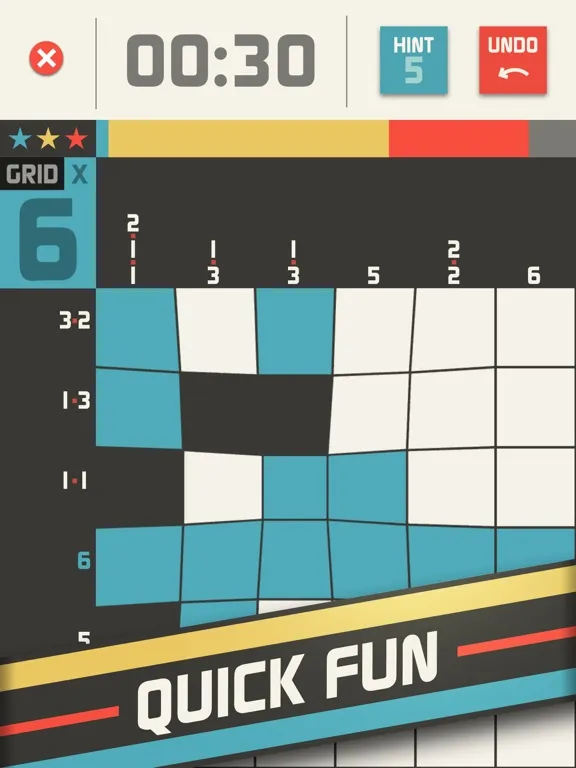 Griddler, also known as Nonogram, Hanjie and Picross, comes with unlimited randomly created levels in 6 different size grids!