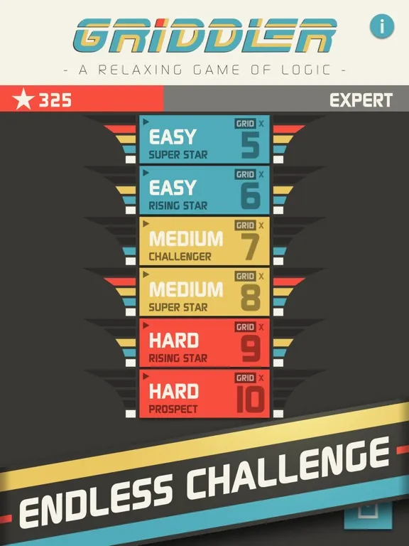 Reached the ultimate rank and want something more challenging? Upgrade to the more difficult levels, ranging up to 10x10!