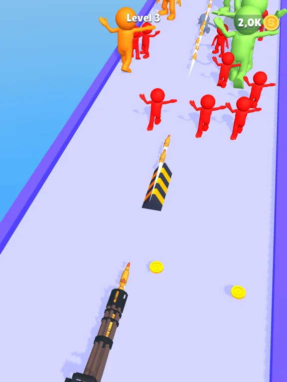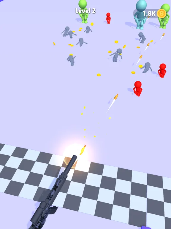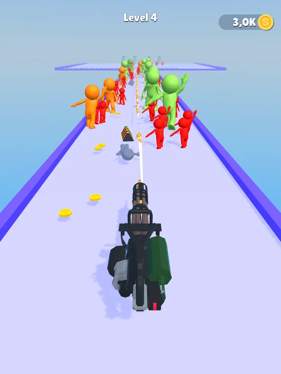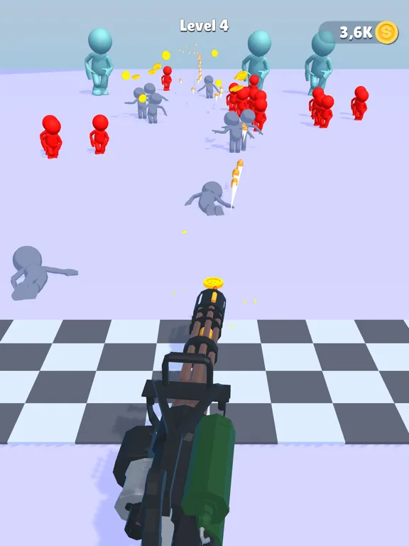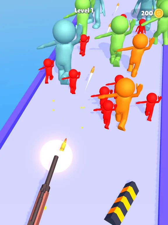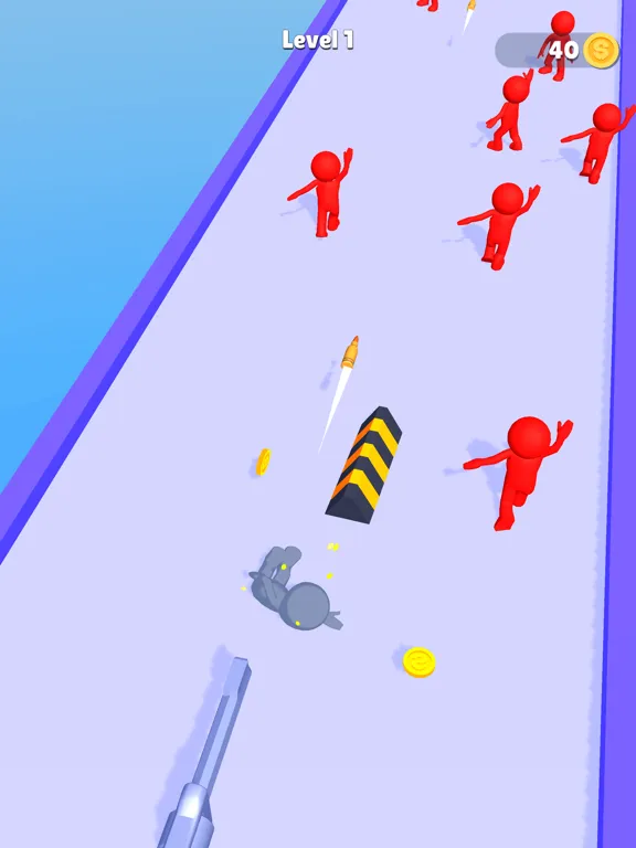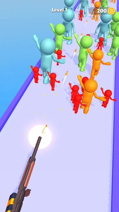 Push the enemies by using stick,Gain money to upgrade and evolve your gun!