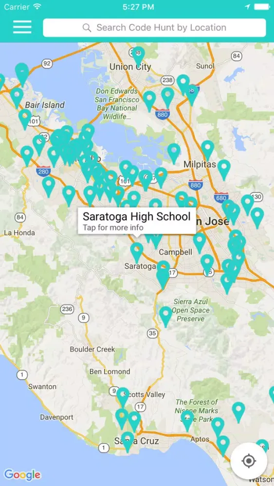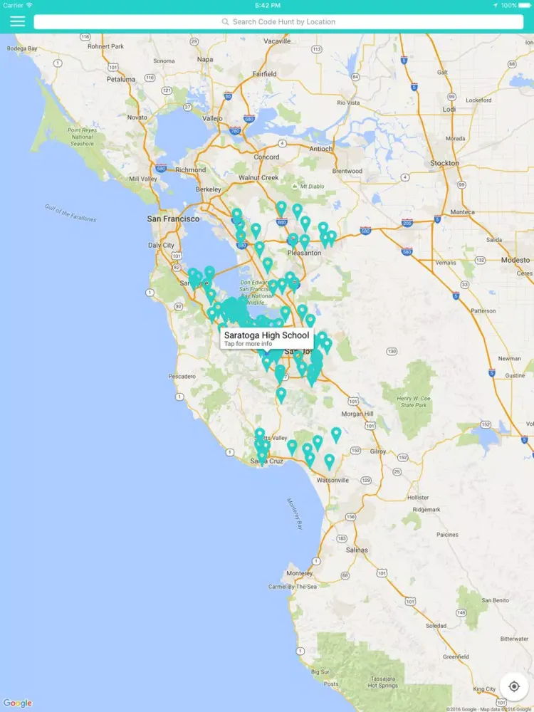 Code Hunt allows you to find schools around you where Computer Science classes are offered. You can search for schools anywhere in the world and find information about them, such as address, contacts, and website.