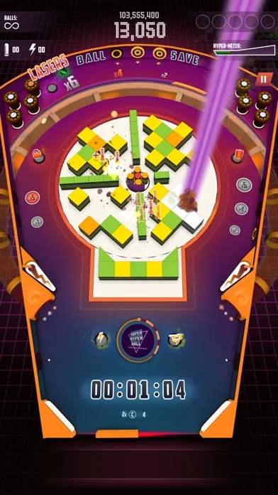 Super Hyper Ball 2 is a hyperactive cocktail of Pinball & Breakout. Set in a 80s/retro themed table you compete against the world to get the highest score in 4 different game modes.