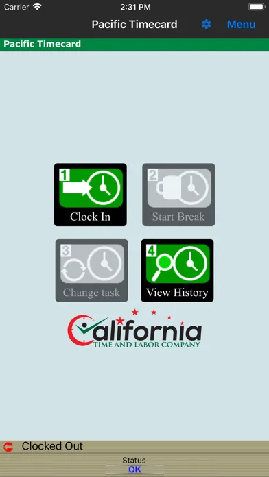 *Note: To enable Timecard to work with your device, your company must have a Timecard organization configured and setup prior to downloading the application. Please contact California Time and Labor Company at support@CaliforniaTimeandLaborCompany.com