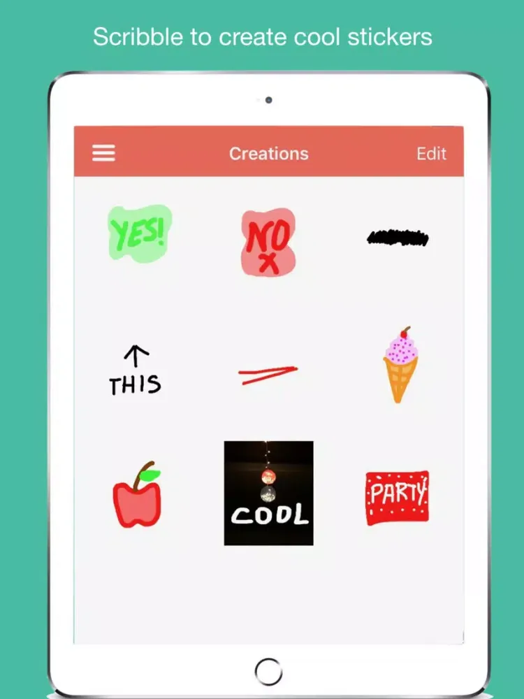 Sketch and doodle and scribble your own stickers. That's right! Just scribble whatever you want, toogle between colours and settings like size and opacity and viola! your very own sticker is ready!