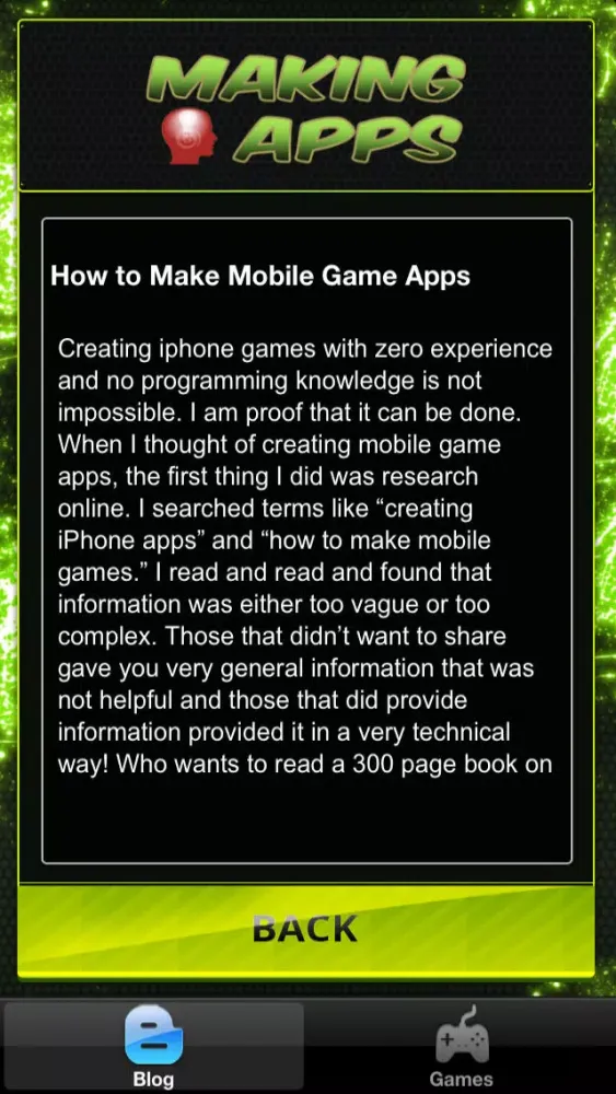 Want to know how to make mobile apps without having any prior design or programming knowledge? Download this app to get FREE advice and see how I created two games, "Bomb Block Free" and "Doodle Catch" with absolutely zero programming or designing skills and no prior app making experience.