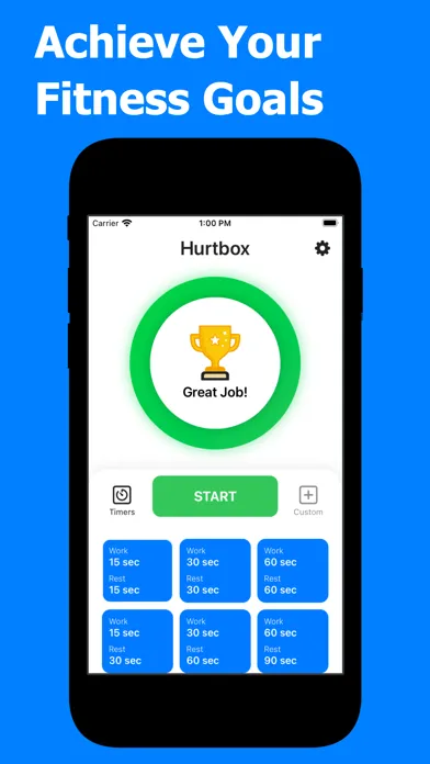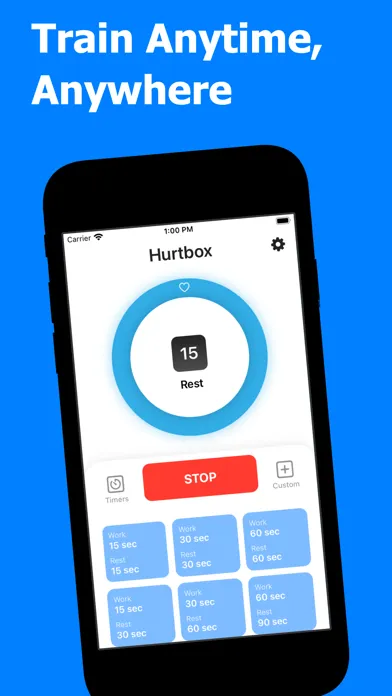 Hurtbox keeps track of your work and rest periods during your workout so that you can focus on getting the most out of your interval workout. Select from one of our pre-defined interval timers or create your own custom interval workout.