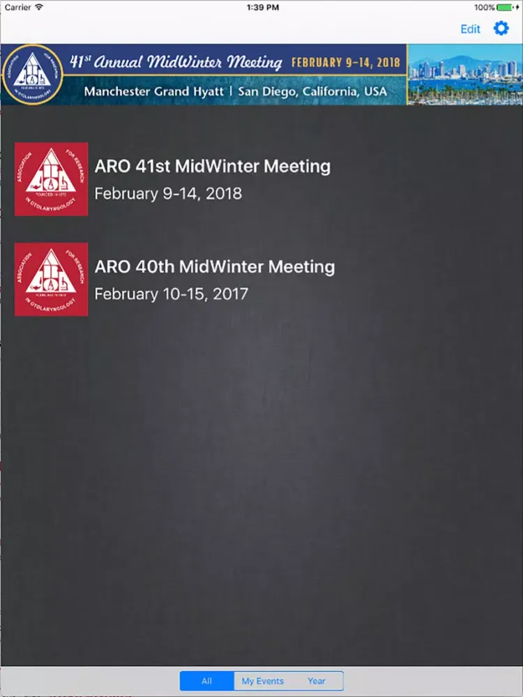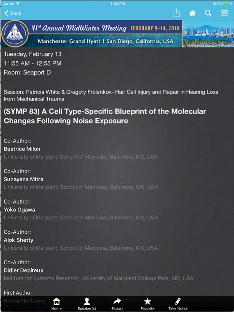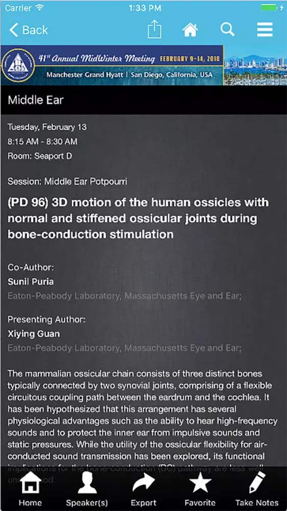 The ARO MWM mobile application allows you to view the schedule, presentations, posters, exhibitors and speaker and presenter details from the conference. Users can take notes adjacent available presentation slides and draw directly on slides inside the app. Note-taking is also available in the exhibitor modules.