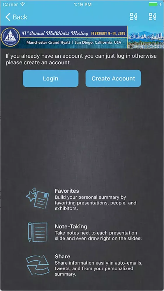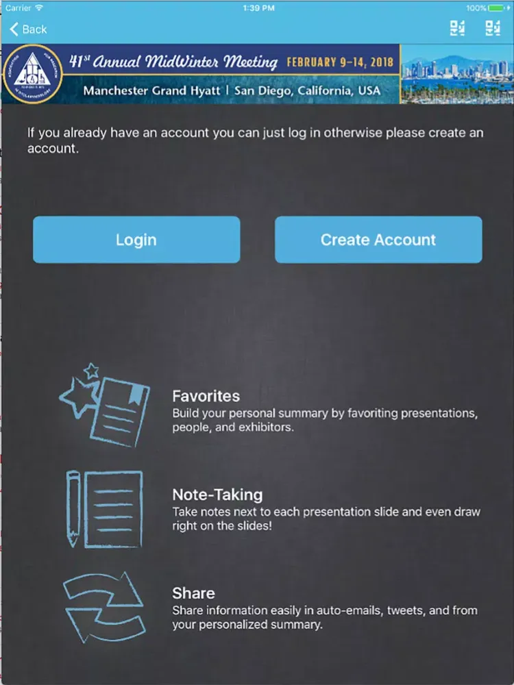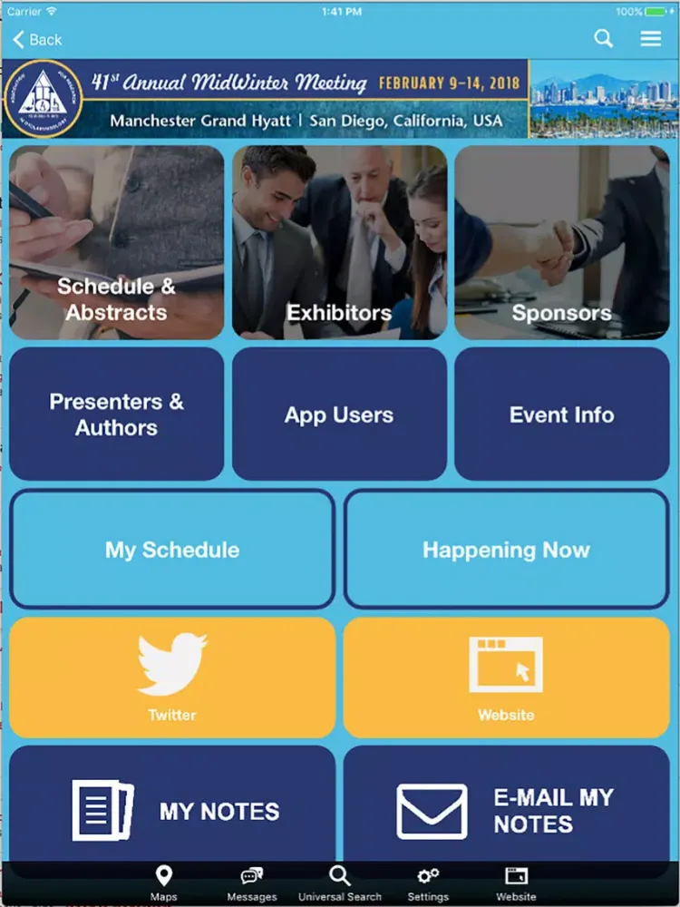Additionally, users can share information with attendees and colleagues with in app messaging, tweeting and emailing.