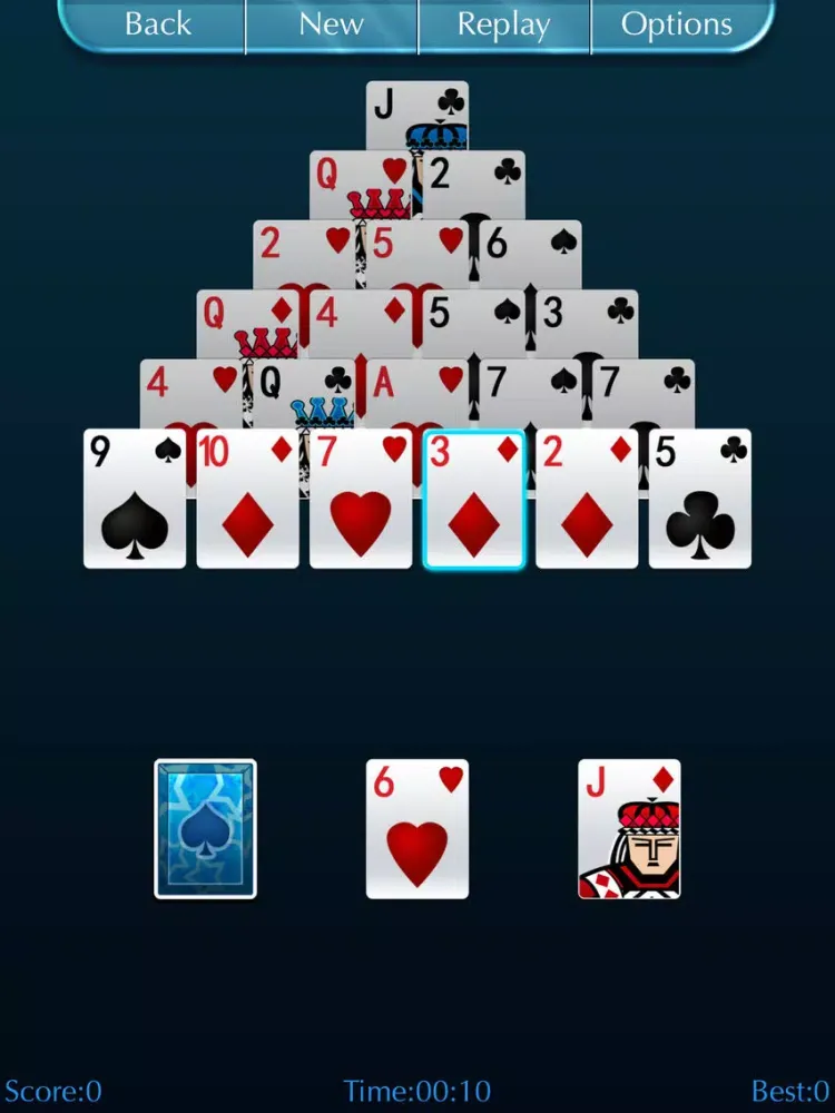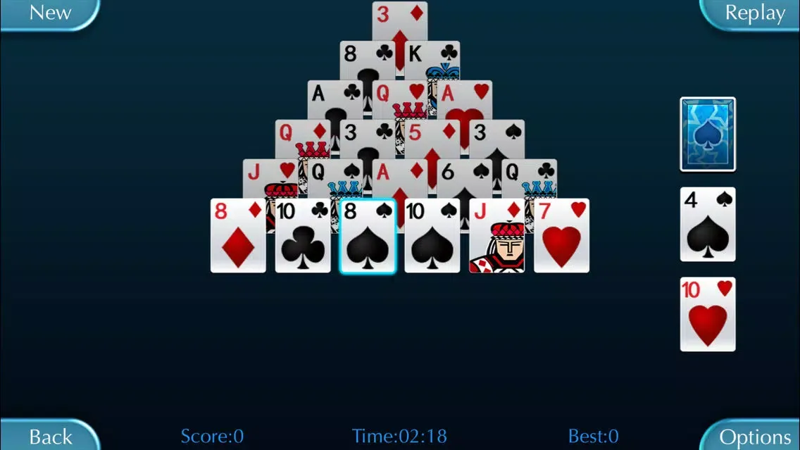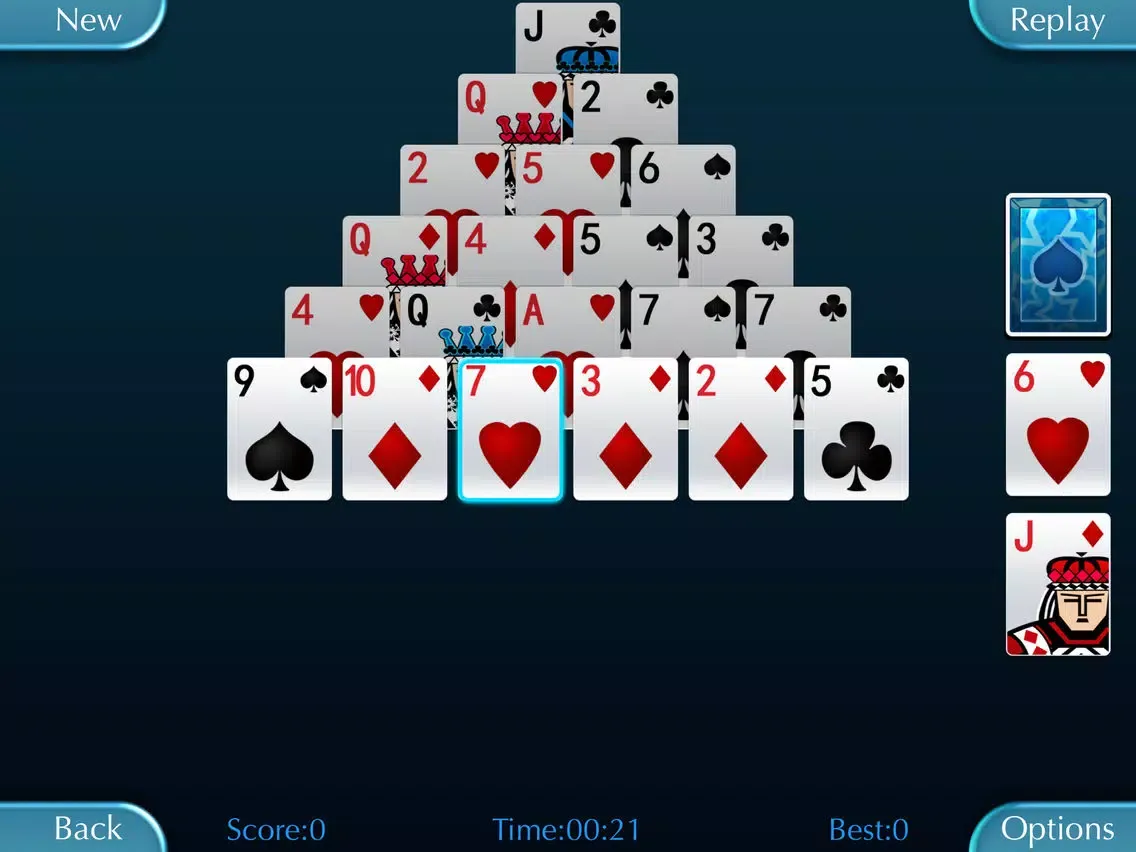 Pyramid Solitaire is one of the most popular computer games in the world, now you can play it on your device. This game features a very complete, it support portrait and landscape orientations, support lock orientations, support for three shuffle mode, support six or seven layers of the pyramid, support autosave, timing, statistics, scoring, leaderboard and so on.