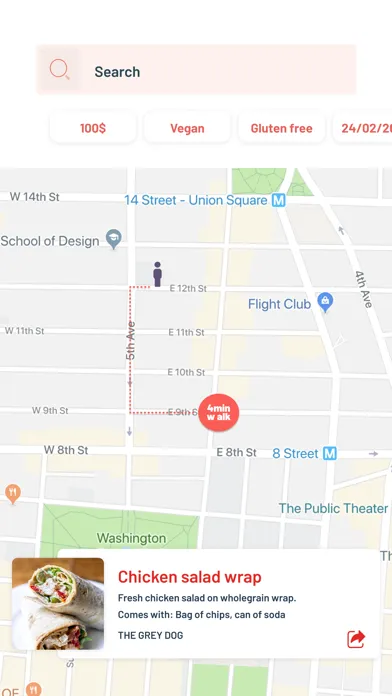 Option to see map with locations of lunch vendors in customers vicinity